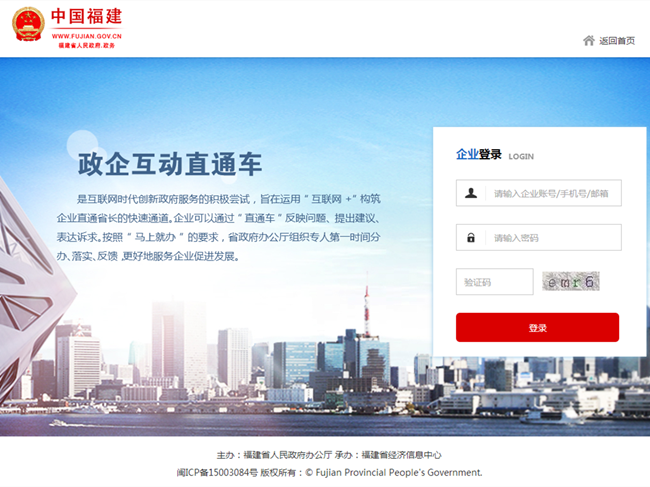 中国福建“政企互动直通车”依托福建省人民政府门户网站软硬件平台建设,以服务创新促进企业发展。2016年8月上线运行以来,已有159家各行业具有代表性的企业实名注册,企业反映的问题快速得到有效解决。2016中国智慧政府发展年会发布的《2016中国“互联网+政务”发展研究报告》指出,福建“政企互动直通车”是网络时代创新政府服务的积极尝试,其主要特点:一是渠道畅通,运行稳定。省政府办公厅落实“马上就办”要求,组织专门队伍第一时间采集、分办、落实、反馈,切实服务好企业,促进发展。同时建立“政企互动直通车”7×24小时安全稳定运行保障机制。二是渠道多样,互联互通。“政企互动直通车”由政府端、企业端两个部分组成。其中,企业端分PC、微信、邮件和短信4个渠道进行建设,微信、邮件和短信渠道通过数据接口与PC渠道互联互通;企业可通过上述渠道提交意见、反映情况和表达诉求;信息类型支持文字、图片、语音和视频等类型,方便政企快速互动。(周琳)