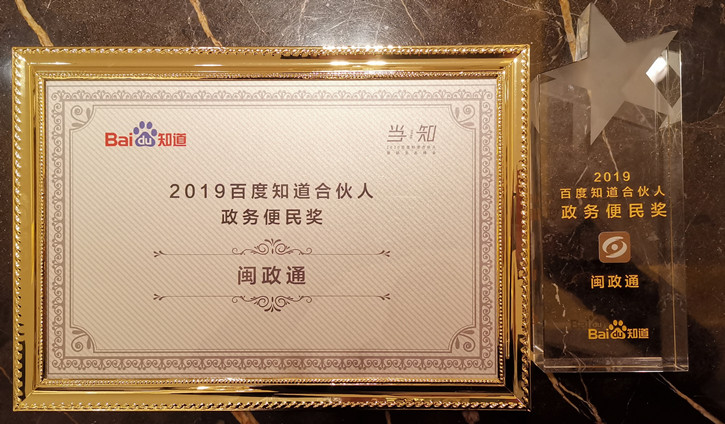 闽政通荣获“2019百度知道合伙人政务便民奖”
