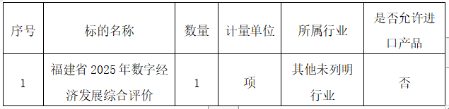 项目名称:福建省2025年数字经济发展综合评价项目