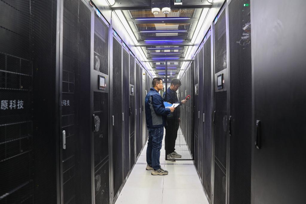 2025年1月6日,工作人员在中国移动(甘肃·庆阳)数据中心机房内巡检。 新华社记者 郎兵兵 摄