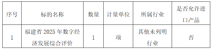 项目名称:福建省2025年数字经济发展综合评价项目(二次)