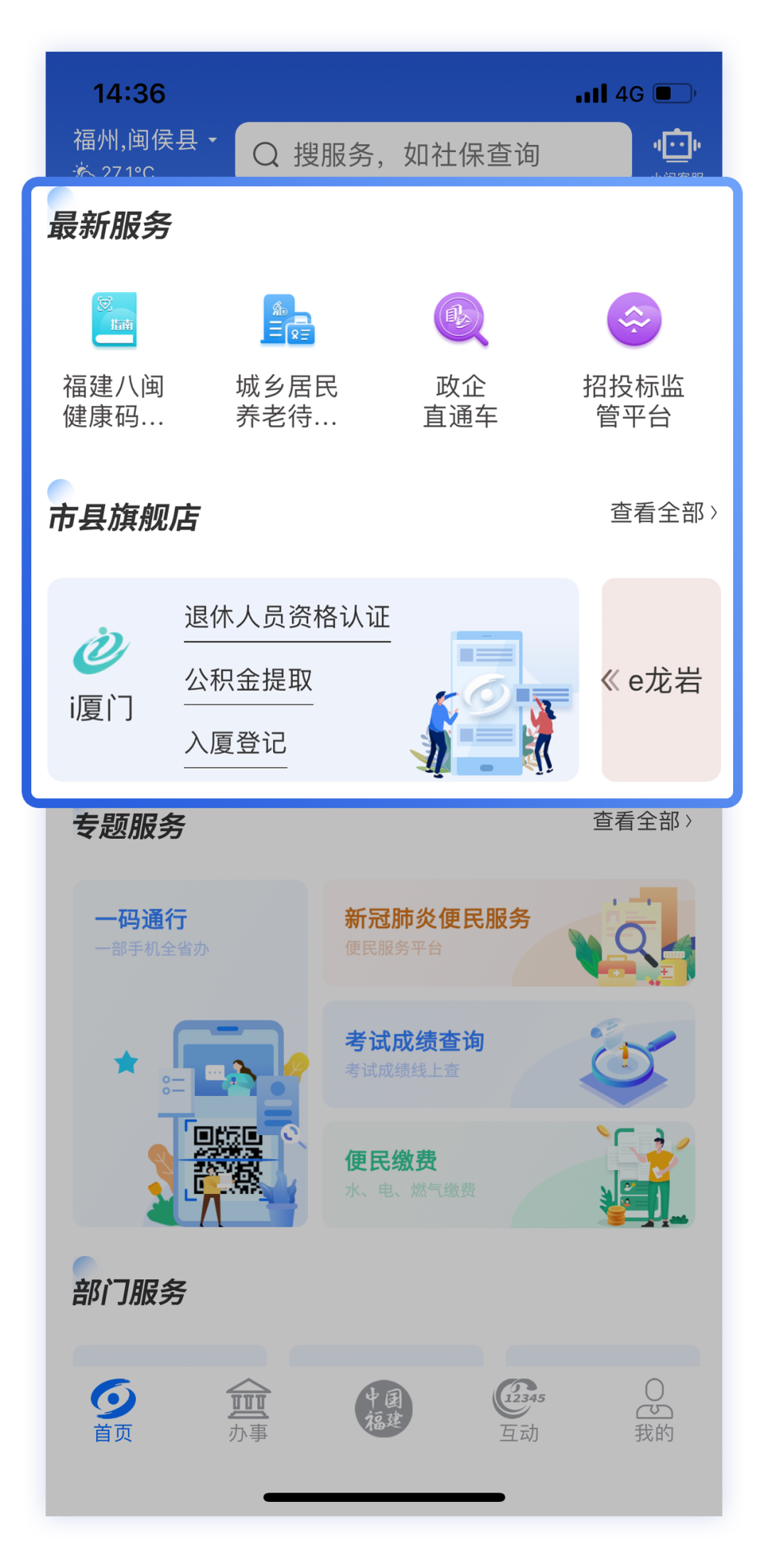 同时,为惠及福建省内更多用户享受便捷政务服务,闽政通App根据用户当前位置,将自动定位并显示当地政务服务小程序。