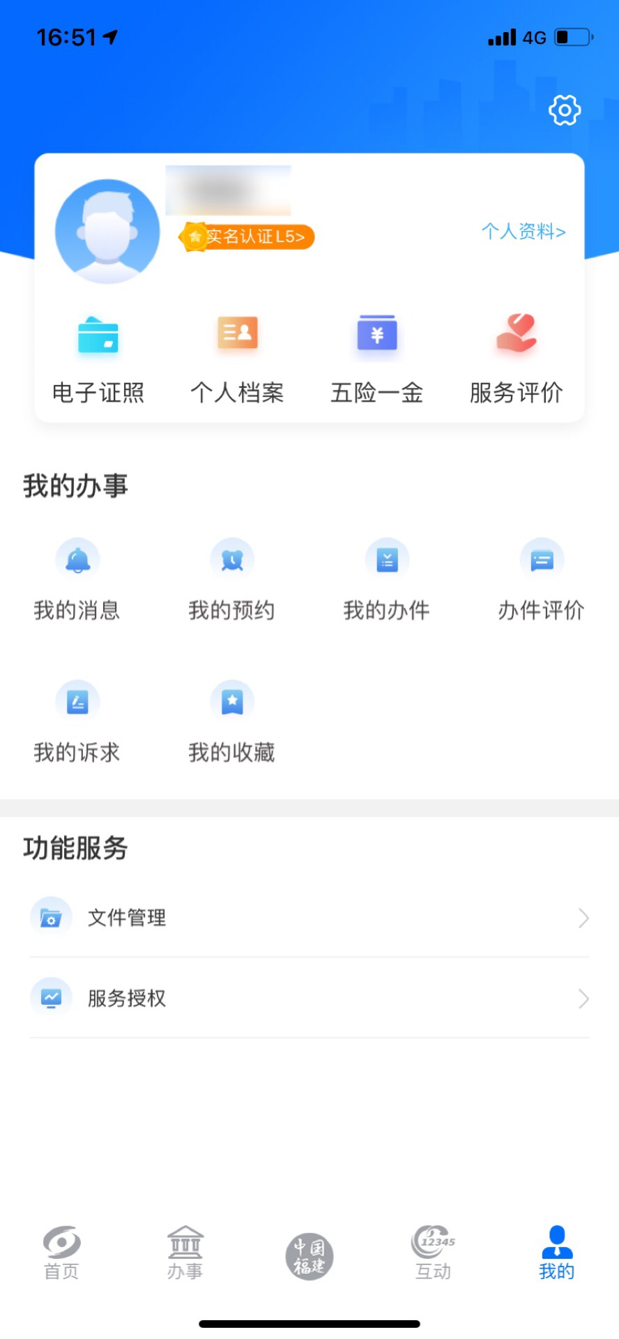 闽政通App3.0将“我的”个人中心页面分为:服务快捷入口(电子证照、个人档案、五险一金、服务评价)、“我的办事”“功能服务”三个模块,调整后页面更加简洁,有助于用户快速锁定服务事项。