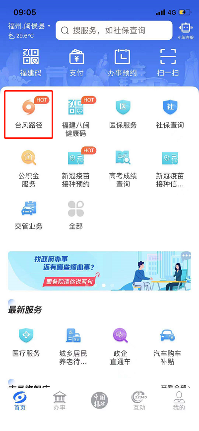 用户打开闽政通APP,首页点击“台风路径”服务即可查看。