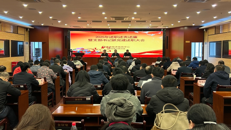 2月3日,省经济信息中心召开2025年述职述责述廉暨支部书记抓党建工作述职大会。会议逐一听取各支部书记、处室主要负责人2025年度履职尽责、廉洁自律情况汇报,全面复盘过往成效、分析当前形势、部署来年任务。中心党委书记、主任林联捷主持会议并讲话,中心领导班子成员及全体干部职工参加会议。